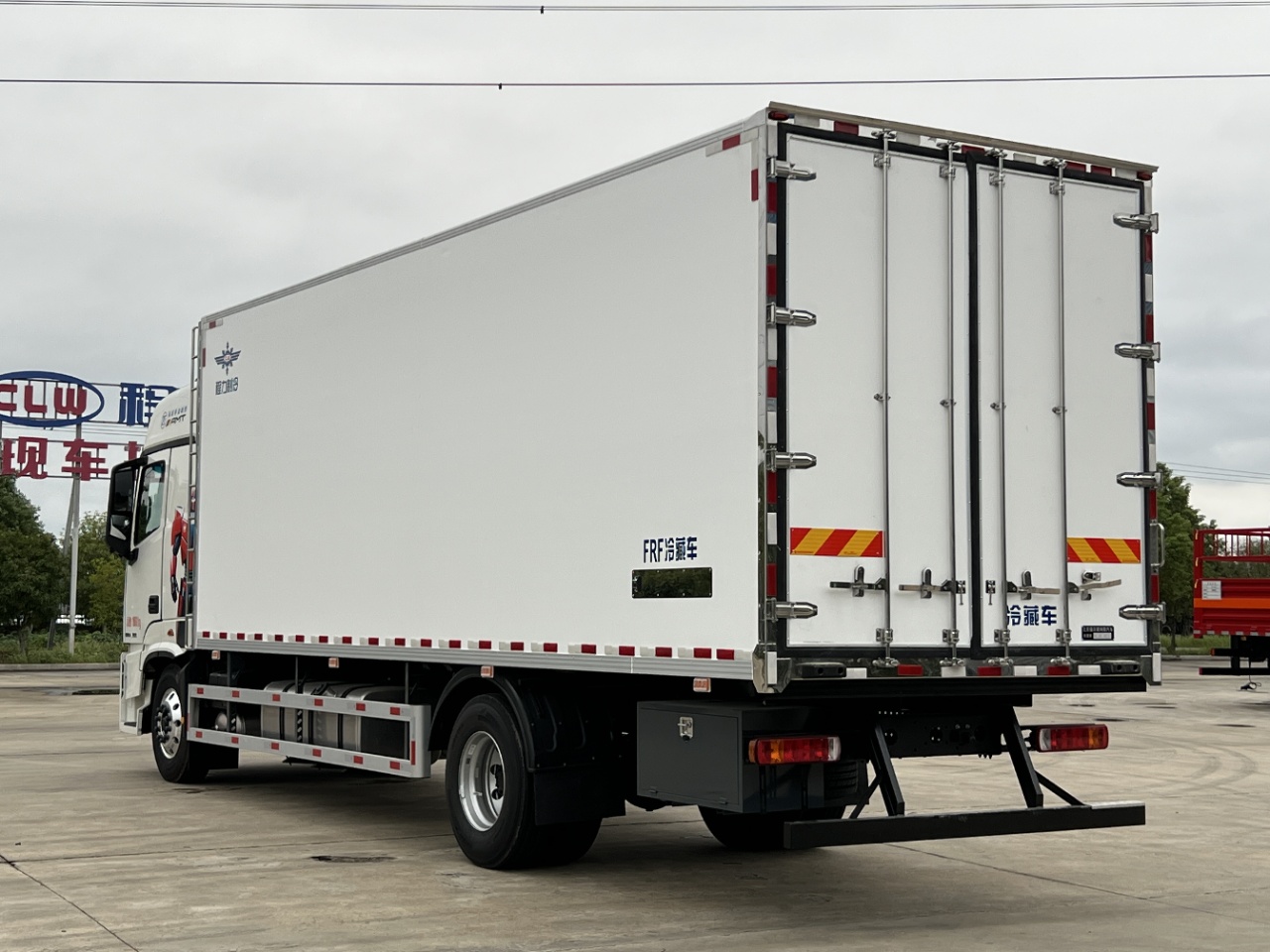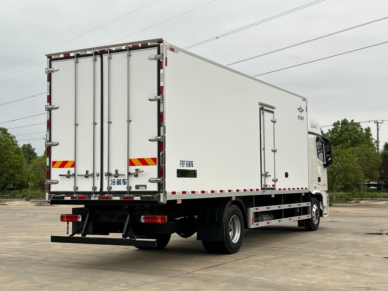 (3): The refrigerated truck body accessories: The box is surrounded by thickened aluminum alloy trim, stainless steel corner guards, stainless steel door locks and hinges, stainless steel lock parts and hinges, and energy-saving LED lighting inside the box.