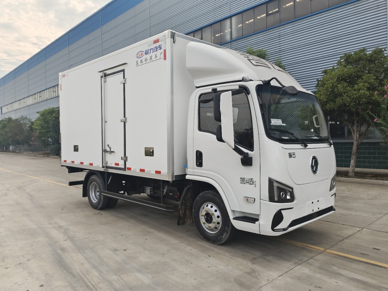 Truck dimensions: 4080 × 2100 × 2100 (mm). The body is made of inner and outer fiberglass materials, with an 8 cm thick insulation layer in the middle. The bottom of the box is made of anti-slip and wear-resistant fiberglass patterned board with 12 cm profile edge. There is 1 drainage outlet at the front. The sides of the box are wrapped with right-angle aluminum profiles, the rear door is stainless steel wrapped, and it opens on the right side. There are two ceiling lights inside the box.