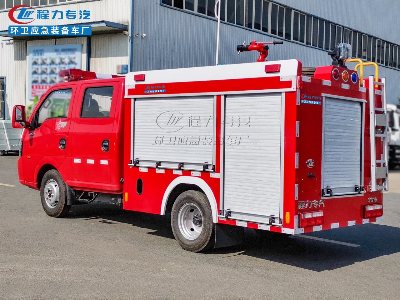The tank volume is 0.850m3. The tank is made of high-quality carbon steel and undergoes internal anti-corrosion treatment. It is equipped with a full-power sandwich pump, a CB10/20 type fire pump, and a PS8/20 type fire cannon. The flow rate is 20L/s and the range is ≥ 45 meters. It has a long row of warning lights, a speaker, a strobe light, a rear lighting lamp, and an operation panel with Chinese labels. It also has a reserved radio power connector and a simple ladder frame on the vehicle roof.
